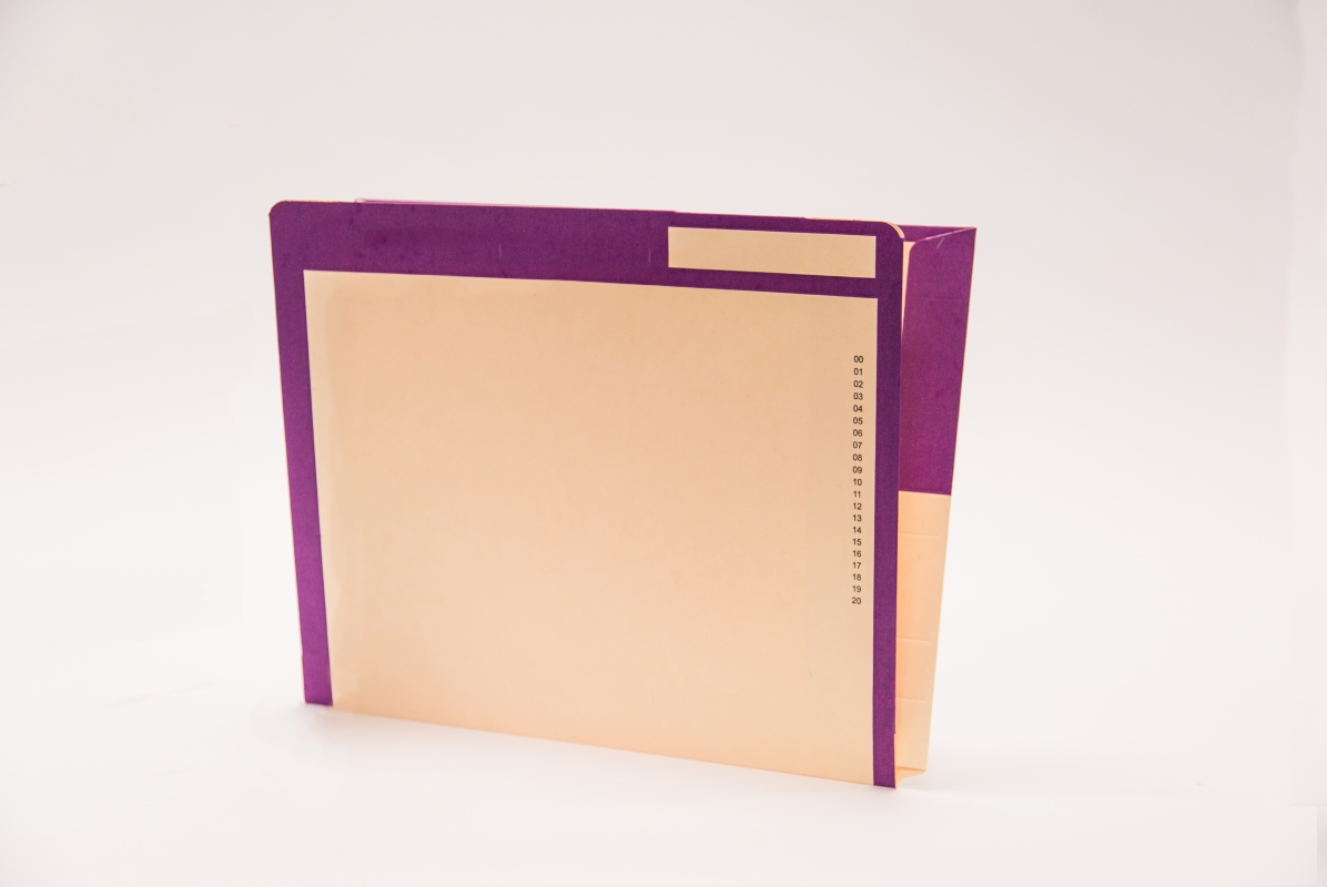 Heavy-duty 14 point manila color-banded end tab folder with built-in pocket on the inside back cover. Letter size, reinforced end tab and edges for durability; flush front and back panels; scored for 3/4" expansion; available in 10 colors. 50/Box